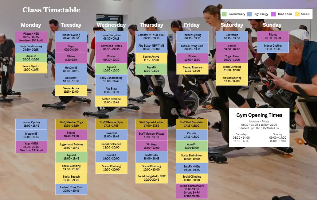 Check out our range of classes for all fitness abilities designed to maximise your workout